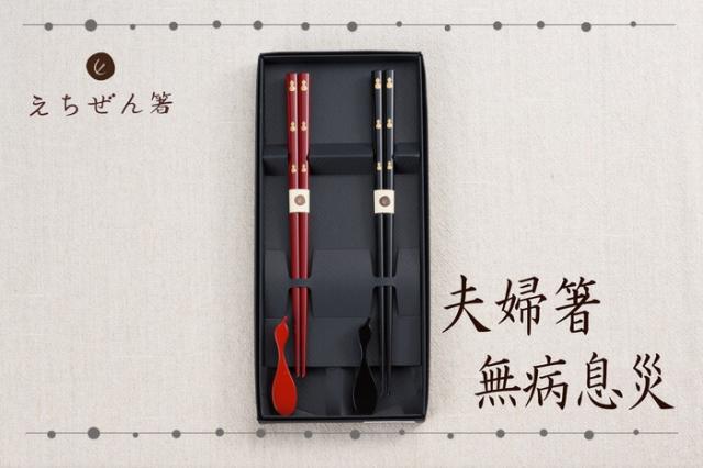 えちぜん箸 箸置き付 夫婦箸 無病息災 食洗機対応 (越前漆器 日本製 贈り物 祝い ギフト 誕生日 母の日 プレゼント 退職祝い)