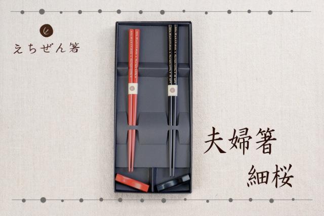 えちぜん箸 箸置き付 夫婦箸 細桜 (越前漆器 日本製 贈り物 祝い ギフト 誕生日 母の日 プレゼント 退職祝い)