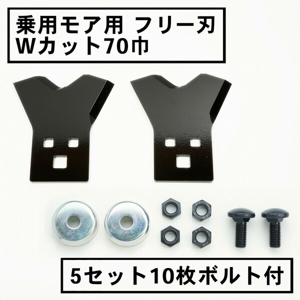 送料無料 乗用モア フリー刃 70mm幅 新形状 Wカット 替刃 5組10枚 ボルト付 フリーナイフ 乗用 草刈機 草刈り機 替刃 ラビットモア