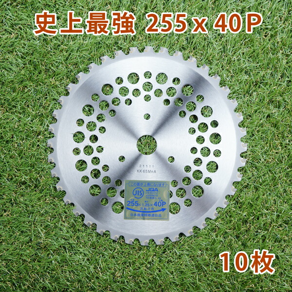 送料無料 草刈り機用 チップソー 史上最強 255mm×40P 10枚組 まとめ買い 荒地の草刈・下刈用 草刈機用 替刃 刈払機用