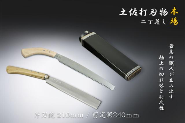 送料無料 東周作 極上 腰鉈 片刃210mm 細身 & 鋸240mm 青紙鋼 二丁差し 鞘付きナタ アウトドア キャンプ 薪割り 枝払い 剪定