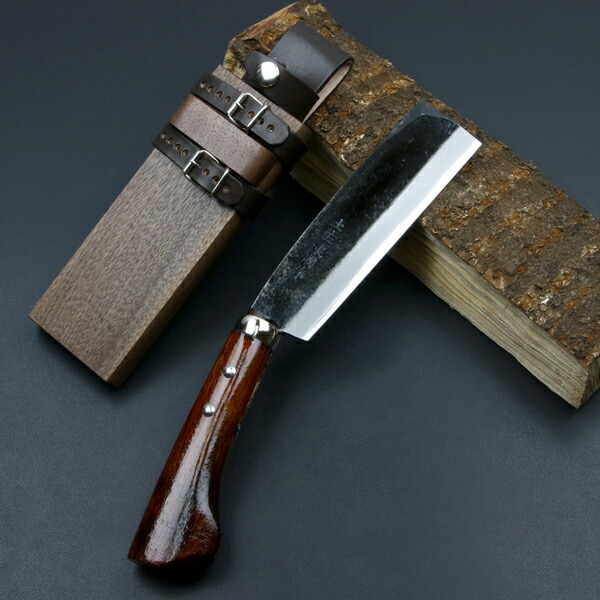 送料無料 東周作 最高級 腰鉈 両刃150mm 白紙鋼 黒打ち仕上げ ウォルナット鞘ナタ アウトドア キャンプ 林業 薪割り 枝払い 草払い