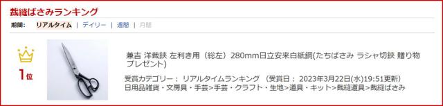 送料無料 兼吉 洋裁鋏 280mm 日立安来白紙2号 左利き用 総左 播州鋏 日本製