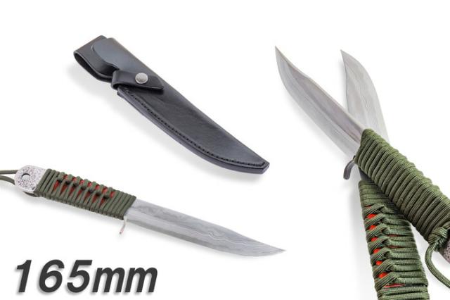 送料無料 雲流 剣鉈 165mm 青紙鋼 ダマスカス ロープ巻柄 本革ケース付き 狩猟 キャンプ アウトドア ナイフ 積層鋼 キャンプギア ブッシュクラフト