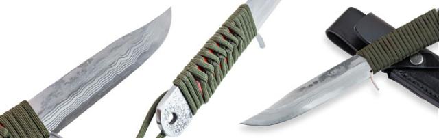 | 軟鉄と軟鉄の間にハガネを挟み込んだ厚い三層材を加熱鍛造し、ハンマーで延ばして火造りしています。 ●ケースは本革製です。 猪・鹿等の狩猟はもちろん釣り・キャンプ・アウトドアにも活躍するサイズです。 ※一丁一丁手造りの為紋様は写真の物とまったく同じではありません。ご了解下さい。 |