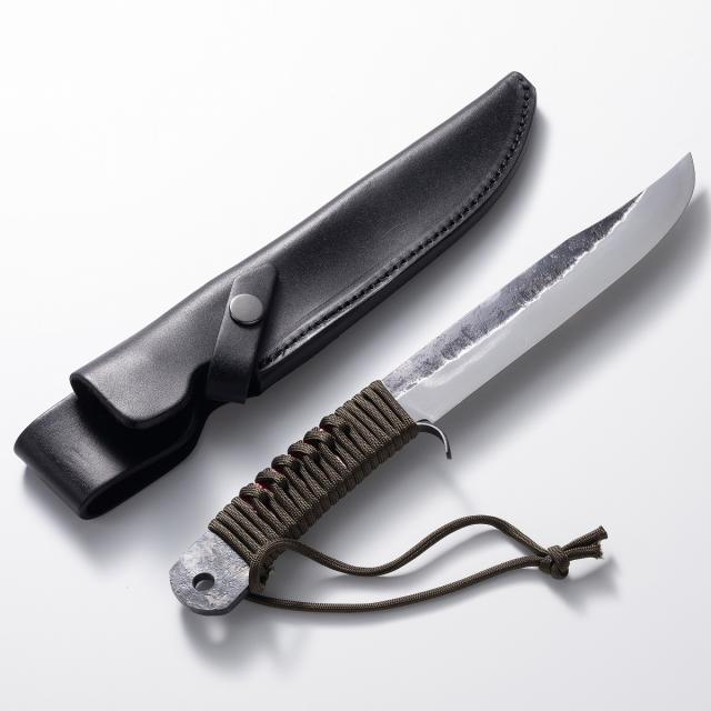 送料無料 剣鉈 165mm 青紙鋼 黒打ち仕上げ ロープ巻柄 本革ケース付 アウトドア用ナイフ 狩猟解体 フィッシング 登山 剣鉈 キャンプ ナイフ キャンプギア ブッシュクラフト