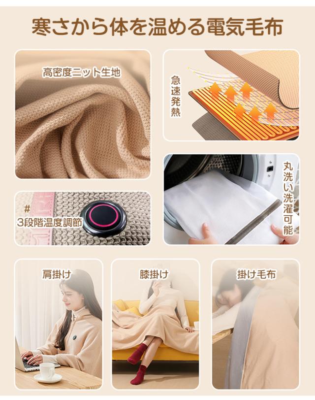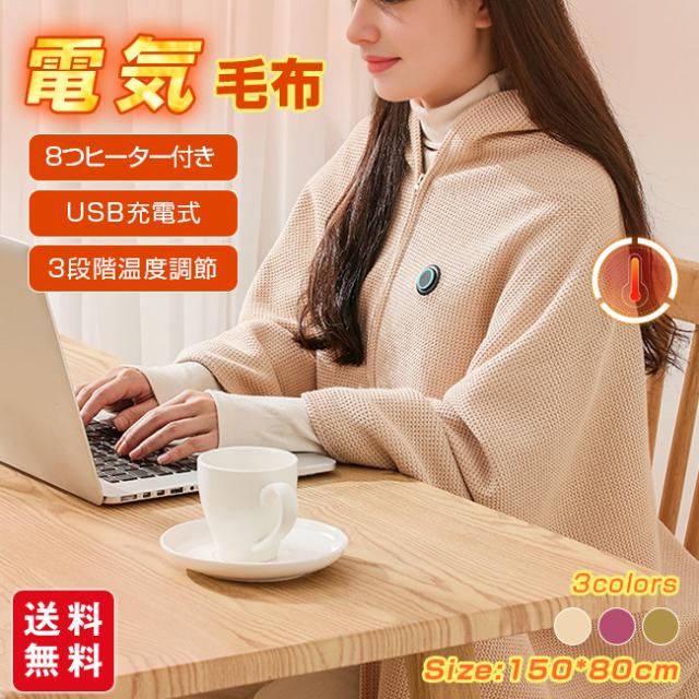 電気毛布 USB 電気ブランケット 8つヒーター付き 肩掛け ひざ掛け 掛け敷き 柔らかい 洗える 防寒対策 USB給電 着る電気毛布 掛け毛布 3段階温度調節 150*80cm オフィス 自宅 車中泊 キャンプ