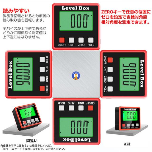 デジタル角度計 デジタル傾斜計 アングルメーター レベルボックス デジタルレベル 水平器 ANGLETES