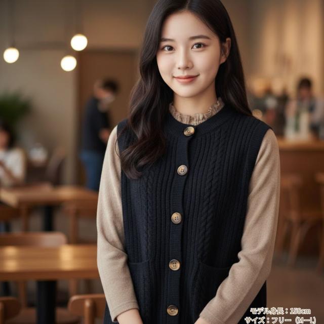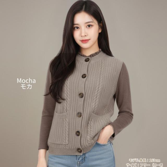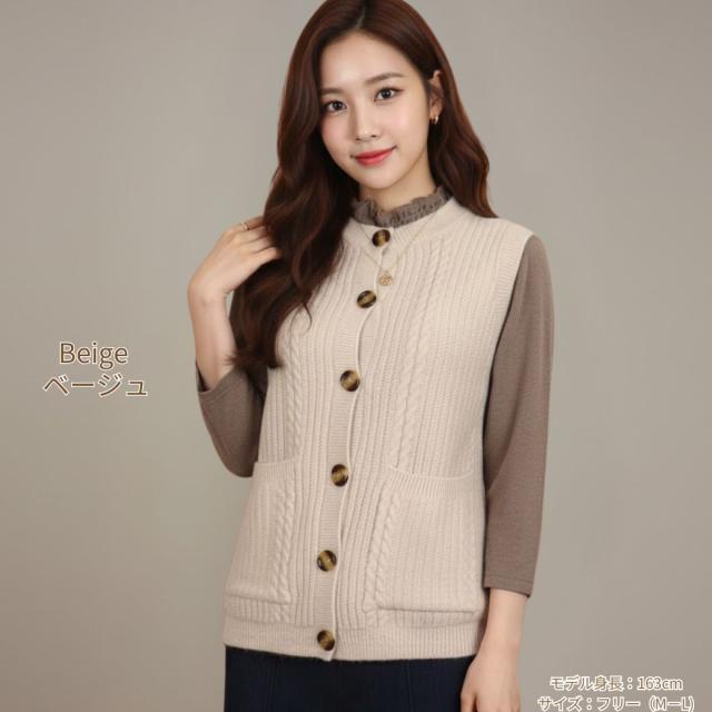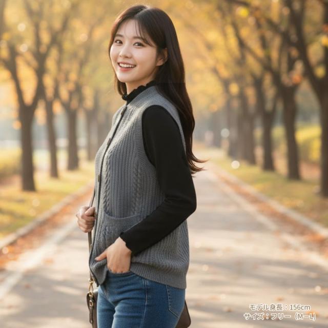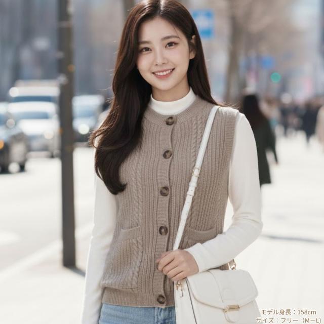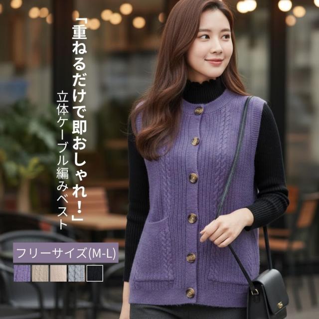 「いつもの服に飽きたけれど、どんな服を選べばいいか分からない」「おしゃれを楽しみたいけれど、体型が気になる」——そんな大人の女性のお悩みに寄り添うのが、この立体ケーブル編みニットベストです。