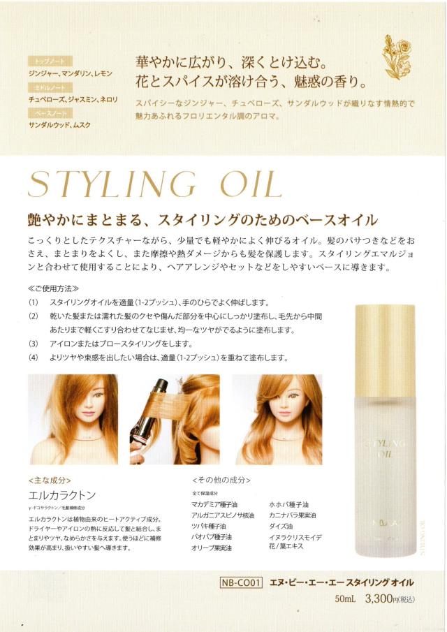 N.B.A.A. スタイリングオイル 50ml カールスタイル ダメージ補修 まとまり エヌービーエーエー NB-CO01