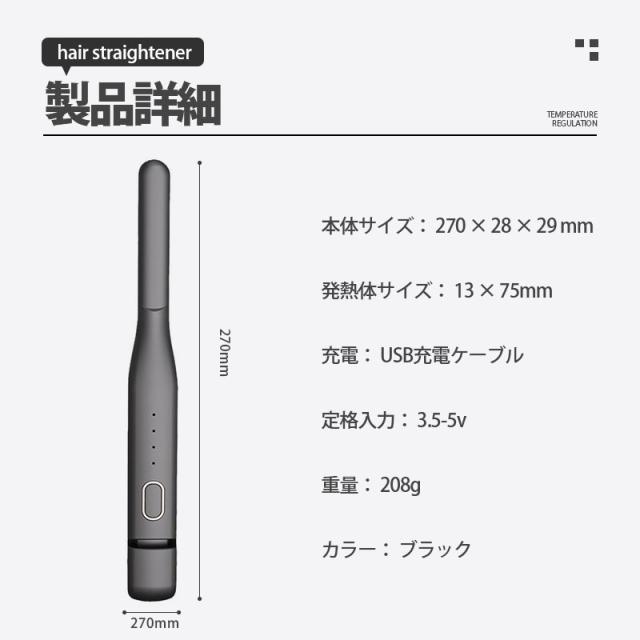 ヘアアイロン コードレス ミニ 前髪用 メンズ ストレート パーマ両用 USB充電 レディース コンパクト 携帯 旅行 4段階温