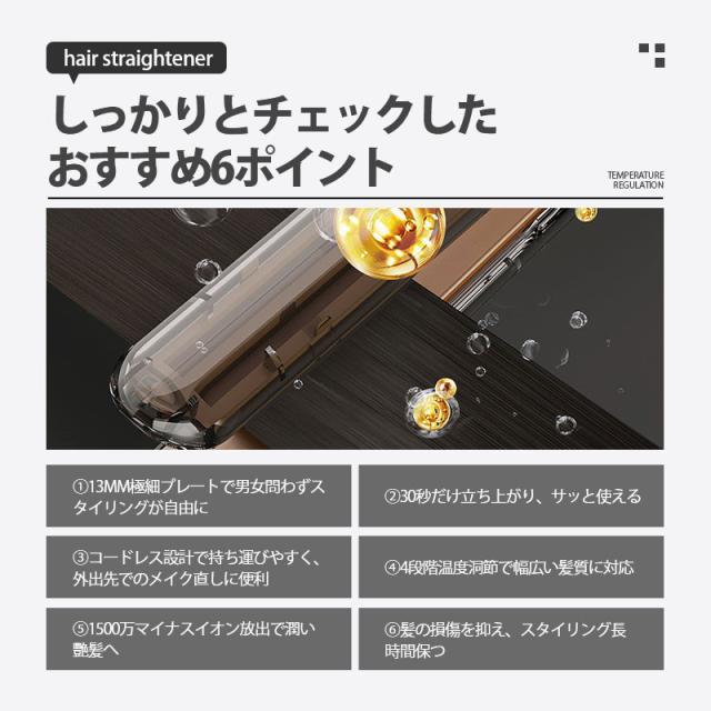 コードレスヘアアイロン ヘアアイロンコードレス ヘア-アイロン へああいろん ヘア hair 携帯用ヘアアイロン 軽量 コンパクト 前 前髪用 持ち運び 携帯 携帯用 旅行 トラベル 旅行用 旅 ストレート カール 傷まない 髪を傷め ない 傷み にくい usb usb充電式 持ち運び 持ち歩き リチウムイオン電池 温度設定 温度 140℃ 160℃ 180℃ 200℃ 初心者 ショートヘア ショート ミディアムヘア ロングヘア ヘア ワンカール 外はね 内はね 髪 挟むだけ 化粧直し 艶 ツヤツヤ レディース メンズ 女性 男性 ミニサイズ 美容 美容家電 家電 ビューティー グッズ 梅雨 雨 湿気 プレゼント ギフト お祝い 母の日 記念日 誕生日 バレンタインデー クリスマス 贈り物 ご褒美 新生活 外出 お出かけ 2way ストレートアイロン ストレートアイロンおすすめ カールヘアアイロン おすすめ 細い
