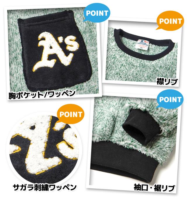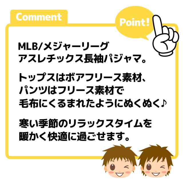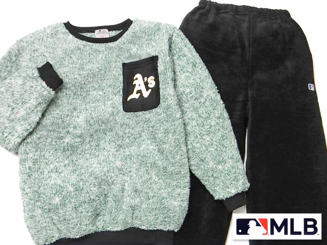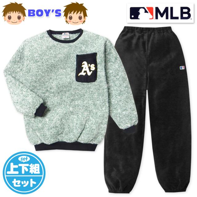 【送料無料】男児 キッズ ジュニア ボアフリース 長袖 パジャマ MLB Athletics/アスレチックス あったか素材 保温性 子供服 男の子 130cm 140cm 150cm 160cm yg-3177a-gn