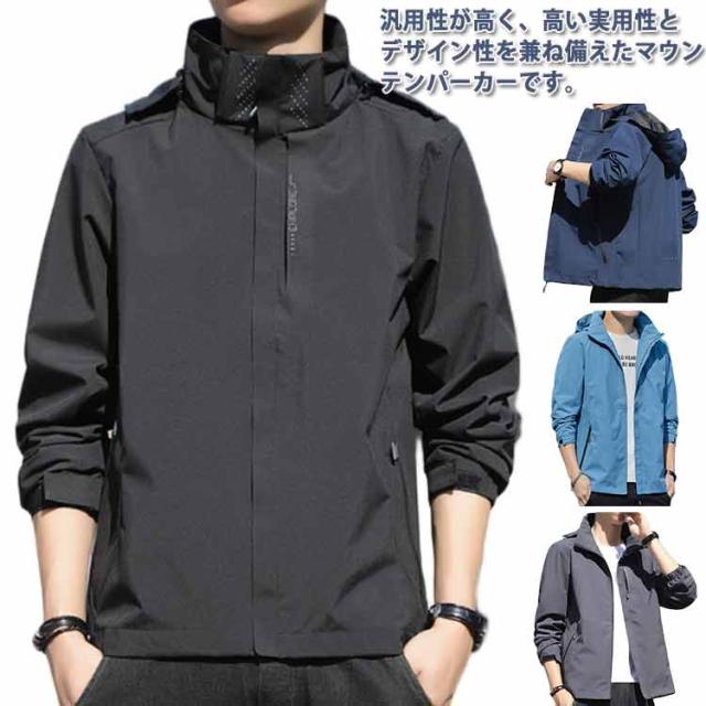 メンズ 耐汚 秋服 ライトジャケット アウター 春物 無地 大きいサイズ 撥水 ウィンドブレーカー 防水 防風 薄手 軽量 マウンテンパーカー ウィンドブレーカー ブルゾン フード付き カジュアル アウトドア 通勤 通学 旅行 登山