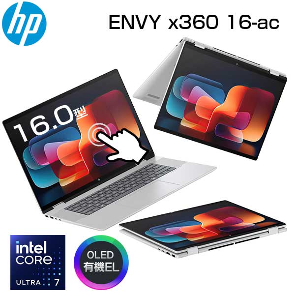 [ AI搭載 タッチパネル 対応 ]HP 2in1 ノートパソコン ENVY x360 16-ac0001TU 16.0インチ 2.8K 2880×1800 OLED 有機EL Core Ultra 7 155U メモリ 32GB SSD 1TB Windows11 無線LAN IR WEBカメラ 顔認証 ノート PC ヒューレットパッカード 9W639PA#ABJ
