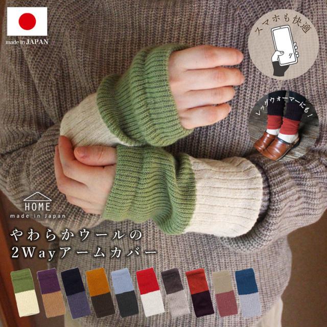 日本製・やわらかウールのアンゴラアームレッグウォーマー(内側シルク)【2Way仕様】 メール便送料無料 手袋 レッグウォーマー アームウォーマー アームカバー HA03