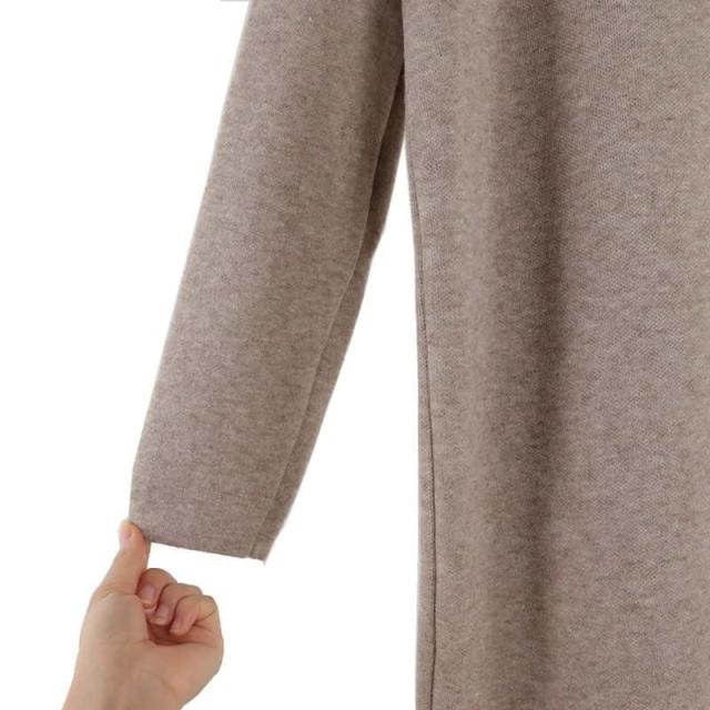 - ロングのニットワンピースにありがちな太って見える感じが少なくストンと落ちるラインで着こなせて気に入りました。生地もしっかり厚みがあり暖かいです。