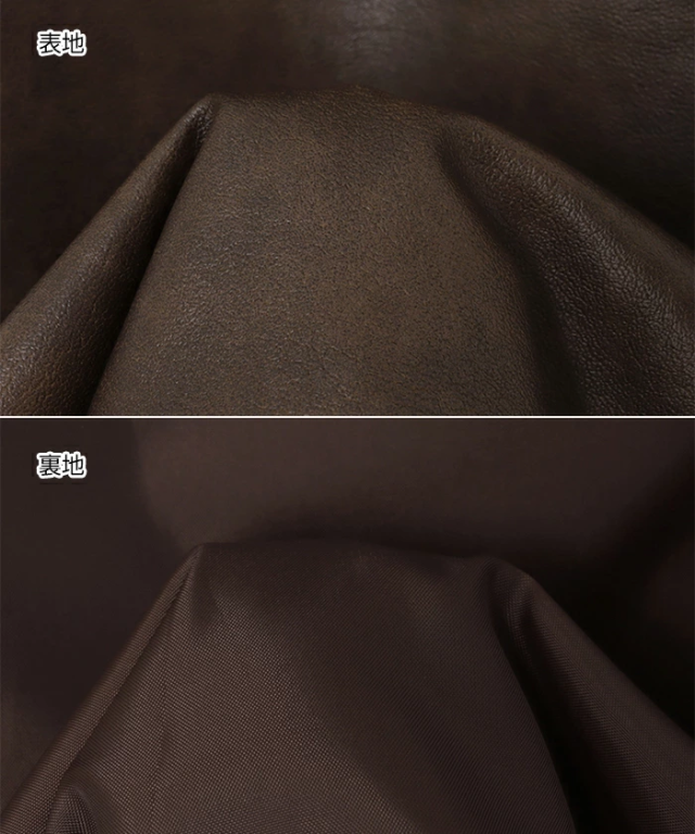 【表地】 合成皮革: 【裏地】 ポリエステル:100% ≪備考≫ 伸縮性:なし 透け感:なし 生地の厚さ:やや厚手 肌ざわり:さらっとしている その他:ムラ染めの合成皮革 生産地:中国製 手洗い:可 ドライクリーニング:可 ウェットクリーニング:可 |