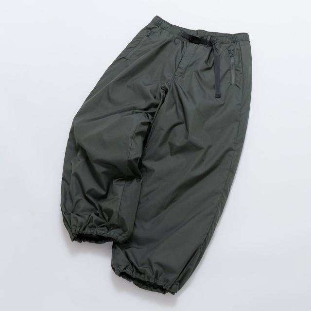 ミリタリーのオーバーパンツのように穿けるワイドシルエットのダウンパンツ。