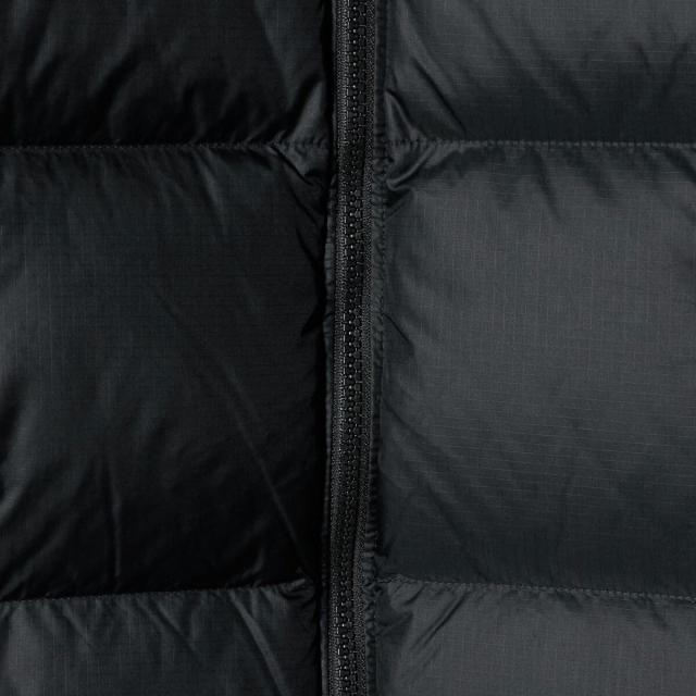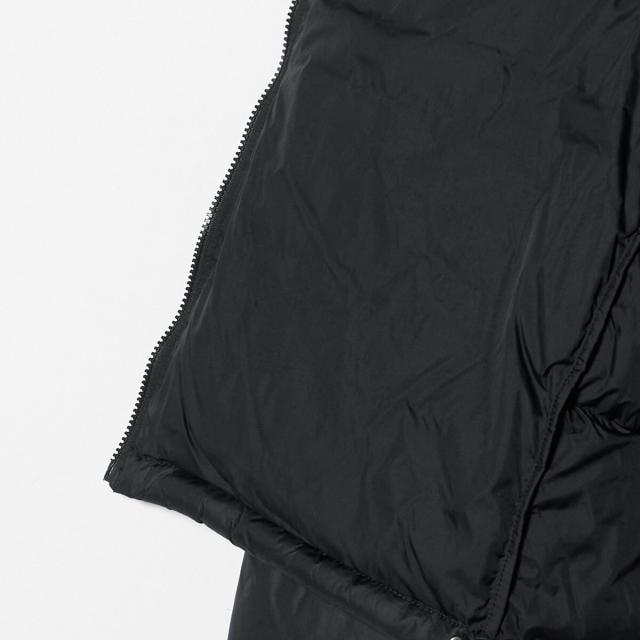 表地ははっ水加工と静電気防止加工が施され、環境に配慮したリサイクルダウンを中綿の一部に使用。