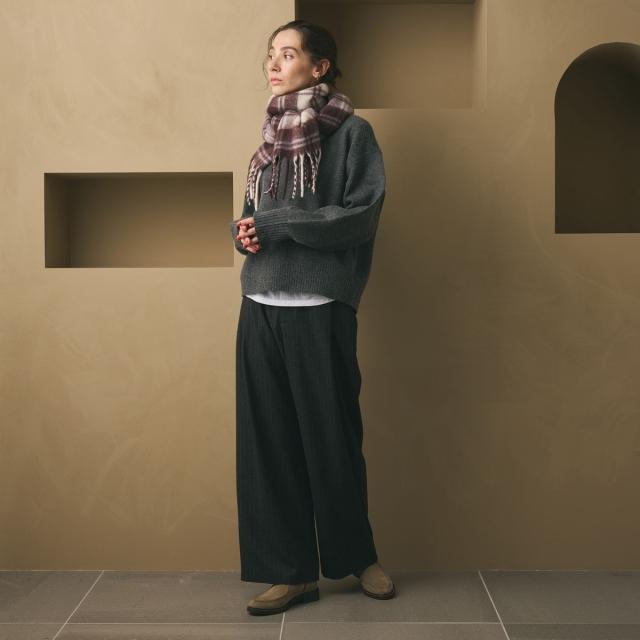 ウールをベースにナイロンとカシミヤをブレンドした、ソフトで心地良い肌触りが特徴。
