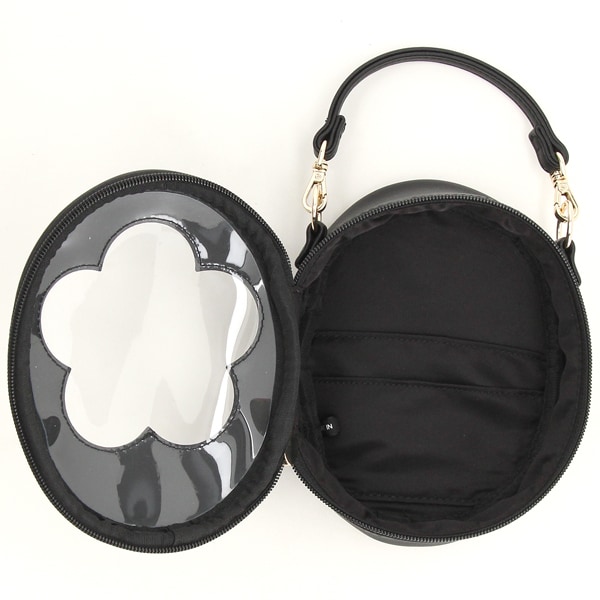 デイジー型にくり抜かれたクリア窓から中身が見えるポーチ。