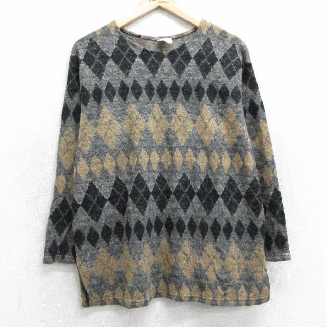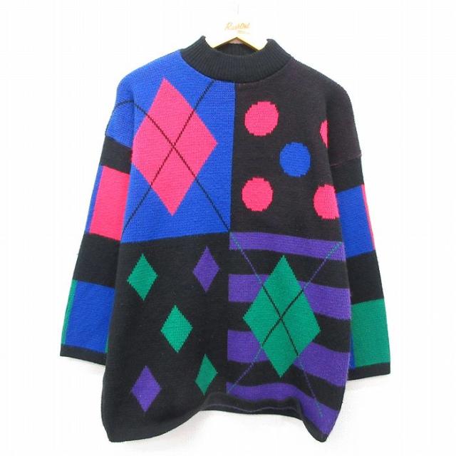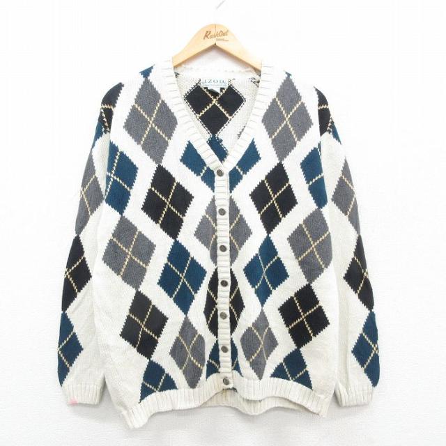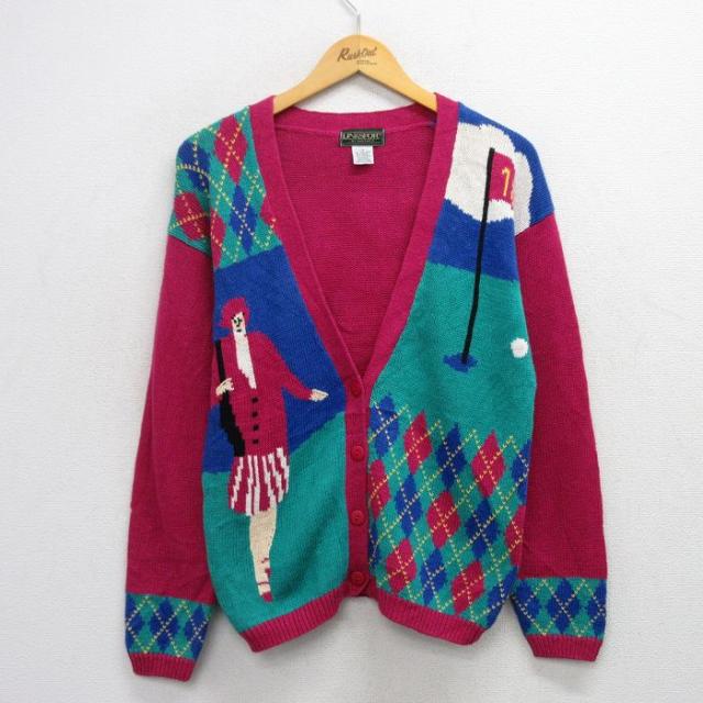 古着 長袖 ニット カーディガン レディース 90年代 90s アーガイル 女性 ゴルフ 濃ピンク他 中古 トップス 中古 古着