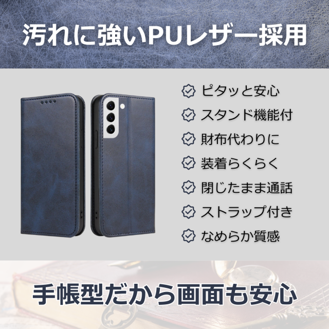 土日祝も発送★送料無料★ 手帳型スマホケース Galaxy S22 対応 マグネット開閉&スタンド機能付き