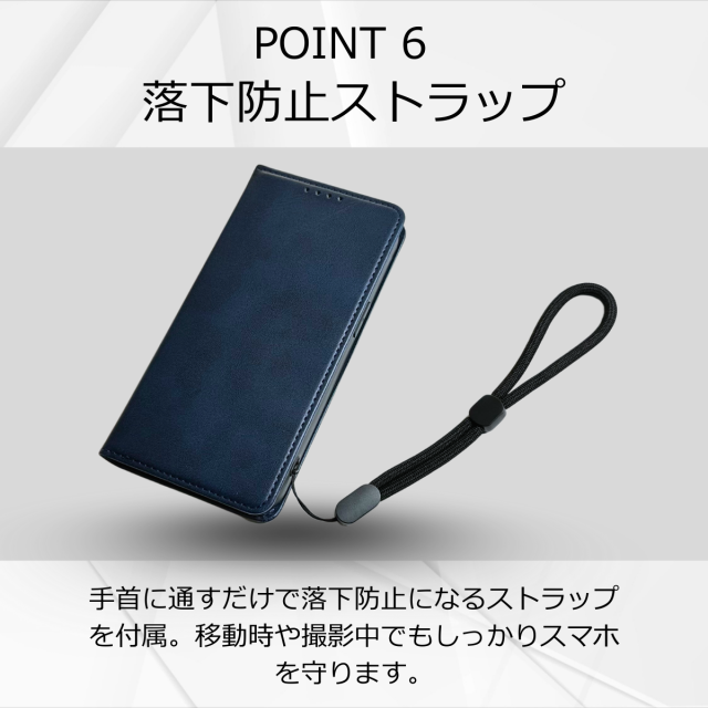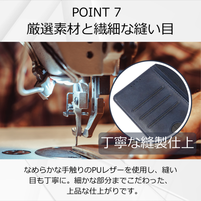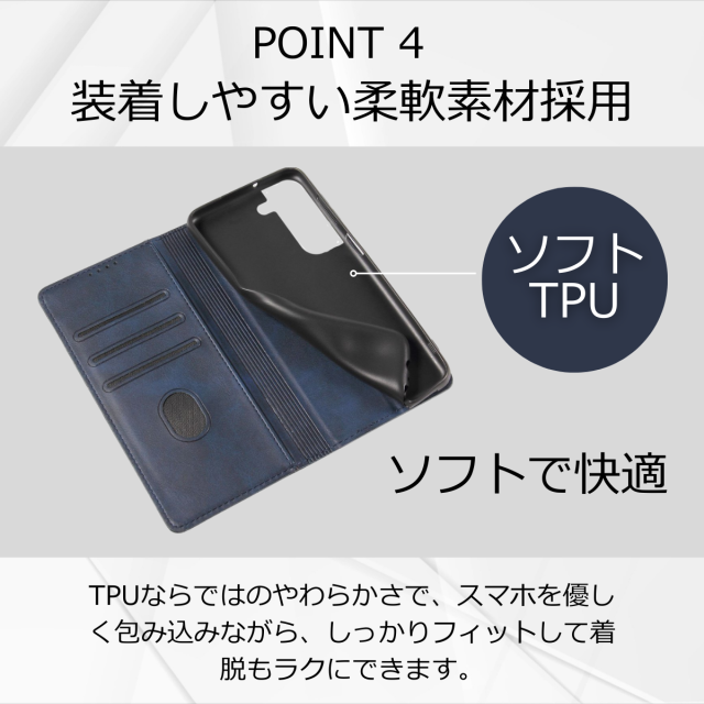 外側は高級感のあるPUレザー、内側は衝撃をやわらげるTPU素材を採用し、大切な端末をしっかり保護します。
