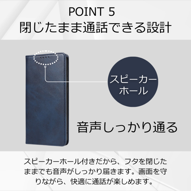 スピーカーホールのおかげでケースを開かずにそのまま通話が可能。手がふさがっているときにも役立ちます。