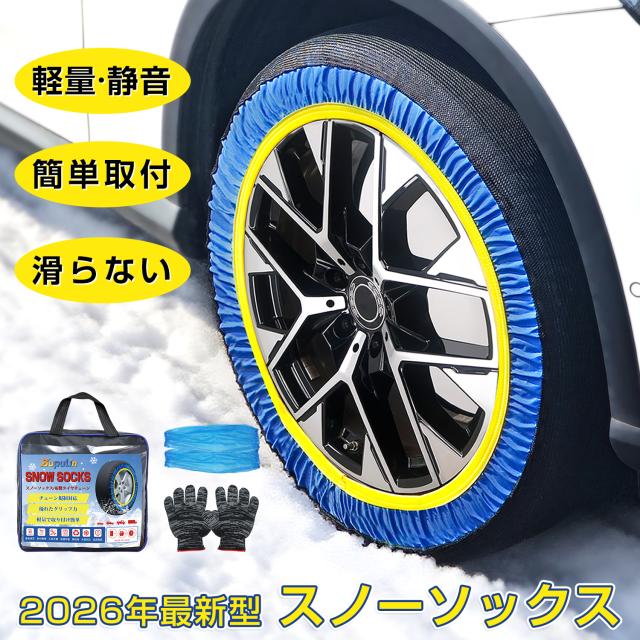 【7-8日限定!30%OFF+ポイント10倍】スノーソックス タイヤチェーン 布製 非金属 布製タイヤチェーン ジャッキ不要 取付簡単 静音 軽量 振動少ない コンパクト収納 タイヤソックス 155/65R14 165/65R14 サイズ70〜77 軽自動車 普通車用