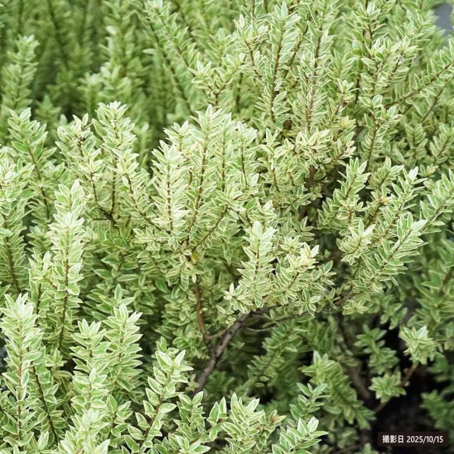 花のない時期も美しい葉が楽しめる斑入りのギンバイカです。
