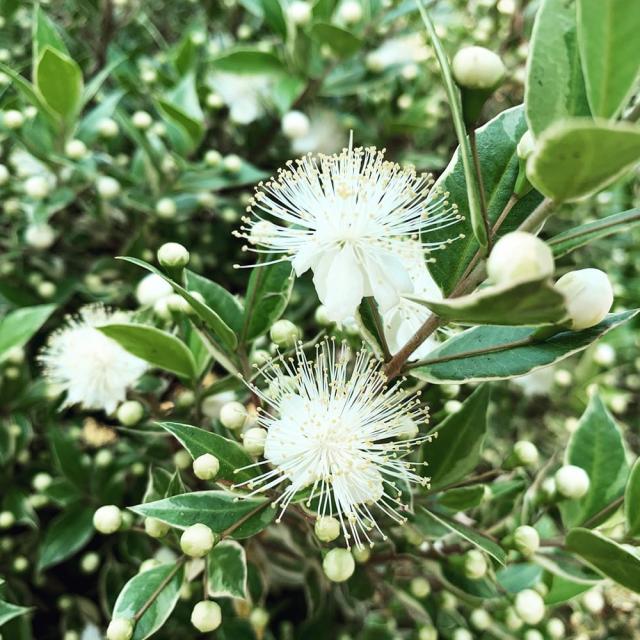マートルといったり、ミルタスといったり、「銀梅花(ぎんばいか)」といったり、「銀香梅(ぎんこうばい)」と書いたり呼び名は様々。