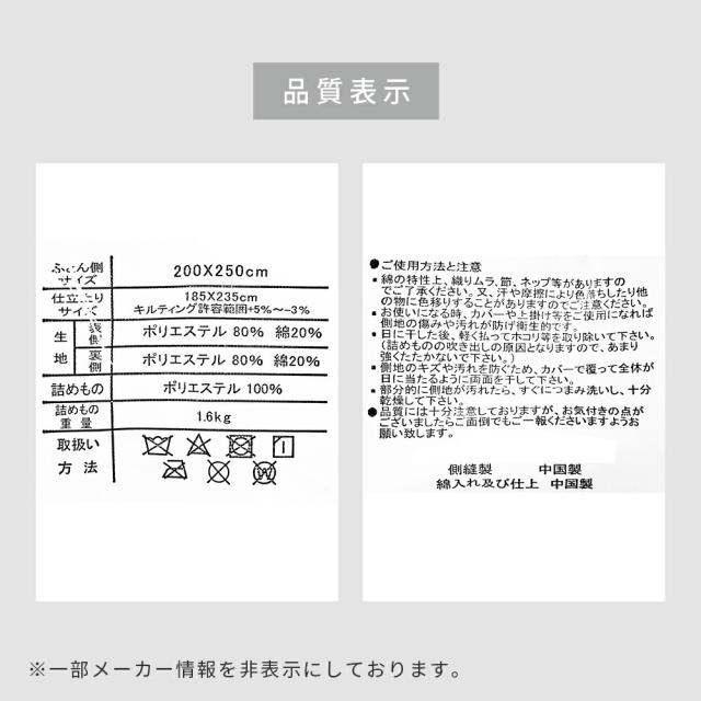 | サイズ | ふとん側サイズ:200 × 250cm |