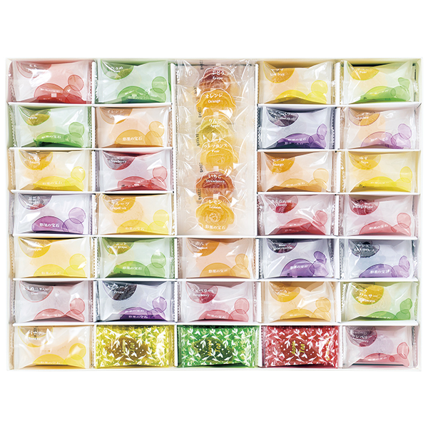 内容量:フルーツゼリー28種77個、花ゼリー6種6個、紅茶ゼリー3種9個 計92個