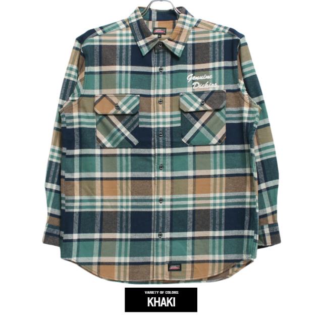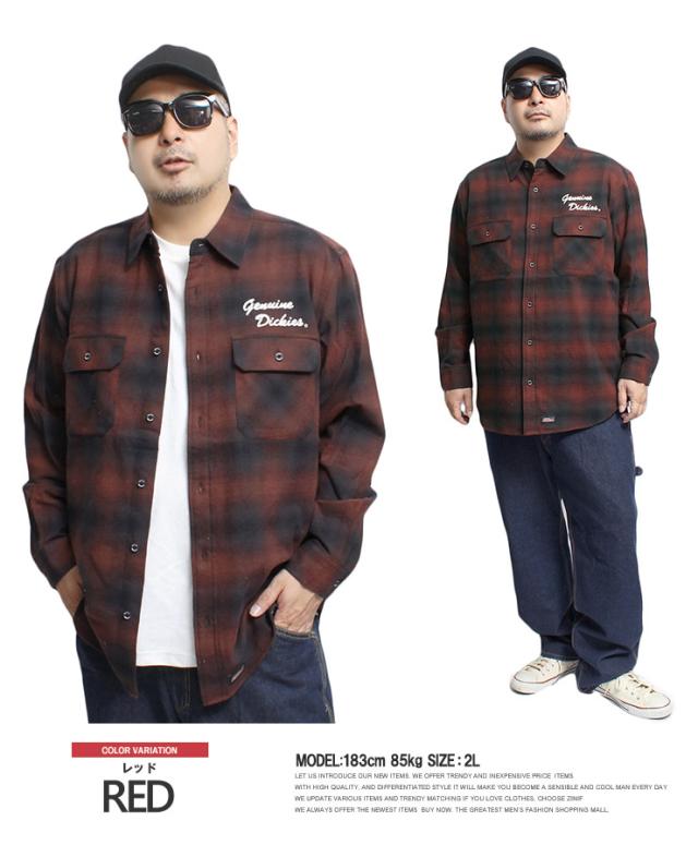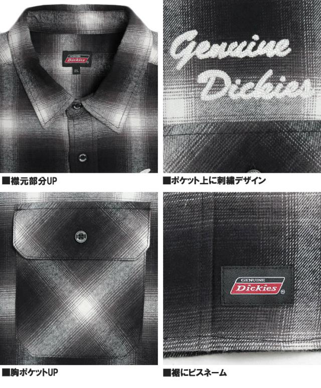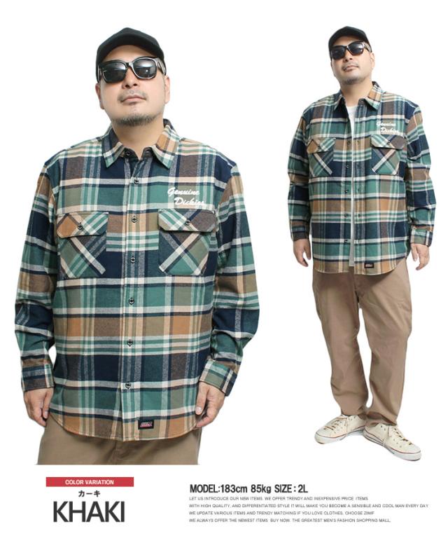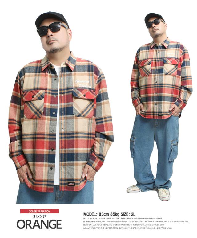 ジェニュイン ディッキーズ(GENUINE Dickies) チェックシャツ メンズ 大きいサイズ ロゴ 刺? 長袖 ワークシャツ 長袖シャツ ネルシャツ 厚手 アメカジ ウエスタンシャツ コットン ワーク ストリート系 ワークマン プラス
