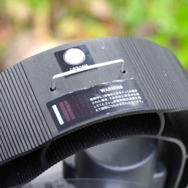 また、本体上部のサーモカラーシールに赤色の3本ラインが表示された場合は、ストーブファン本体の耐熱温度を超えています。