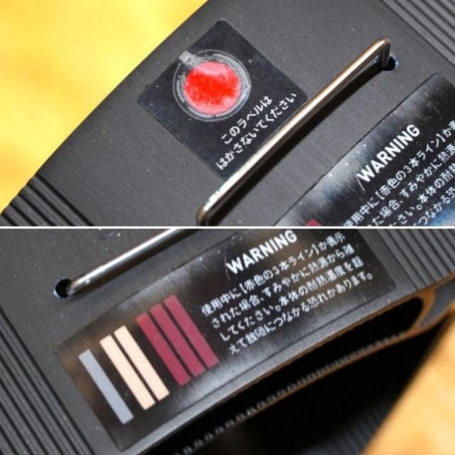 ただし、本体上部の過熱判定シールが赤く変色している場合は、推奨温度 (345℃以下) を超えて使用されたことを示します。