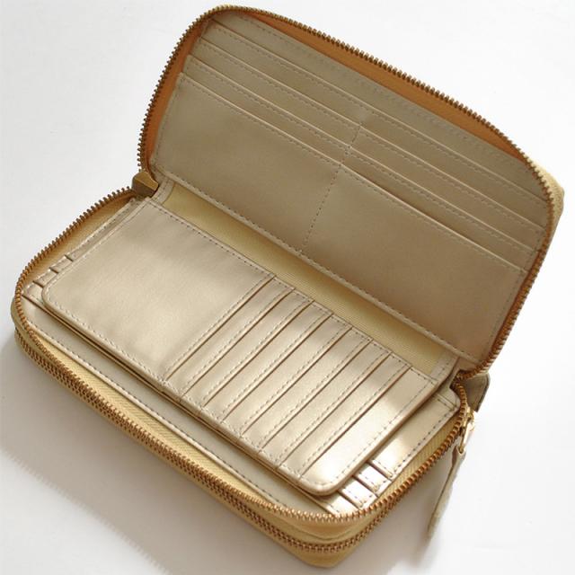 形状は人気のダブルファスナー式のラウンド仕様。2層式なので収納力も抜群で、カードはなんと28枚も収納可能。