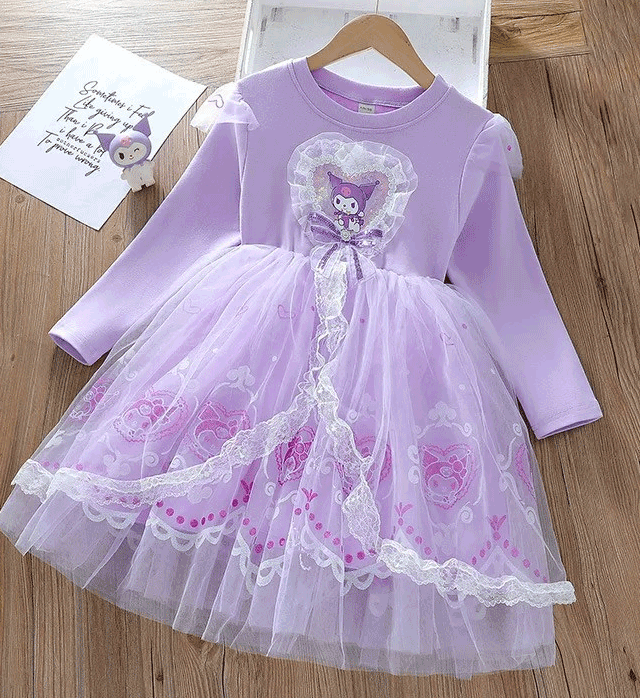 クロミちゃん 子供服 長袖 ワンピース ドレス パープル 90cm-140cm 誕生日パーティー カジュアルファッション プリンセスファッション キューティー 春 秋 冬