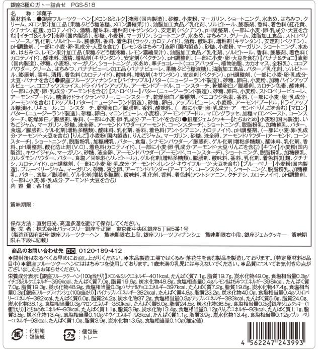 銀座フルーツクーヘン(メロン&ミルク、イチゴ&ミルク、レモン&はちみつ、バナナ&チョコ)4種 各1個