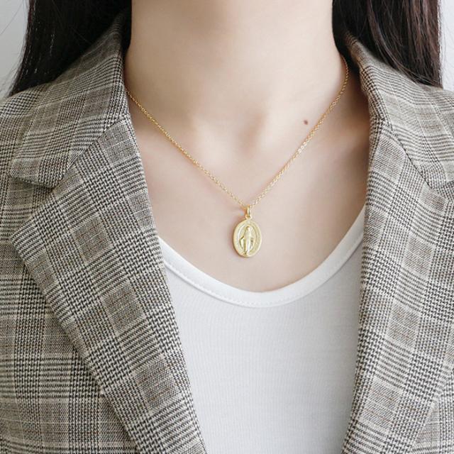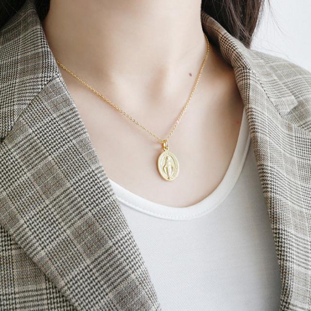 聖母マリアネックレス 奇跡のメダイ 不思議のメダイ コインネックレス レディース 金属アレルギー プレゼント 女性 50代 40代 シルバー925 ゴールドコーティング