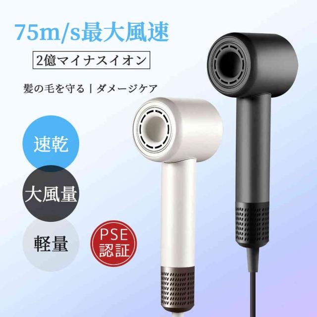 | 【商品概要】 | 最大風速:75m/s マイナスイオン発生量:約2億個/りっぽうセンチメートル 速乾性能:約40秒(目安) 本体重量:約470g(ノズル除く) 温度モード:4段階 風量調整:2段階 騒音レベル:約60dB 定格消費電力:1200W 電圧:110V 周波数:50Hz / 60Hz コード長さ:約1.8m |