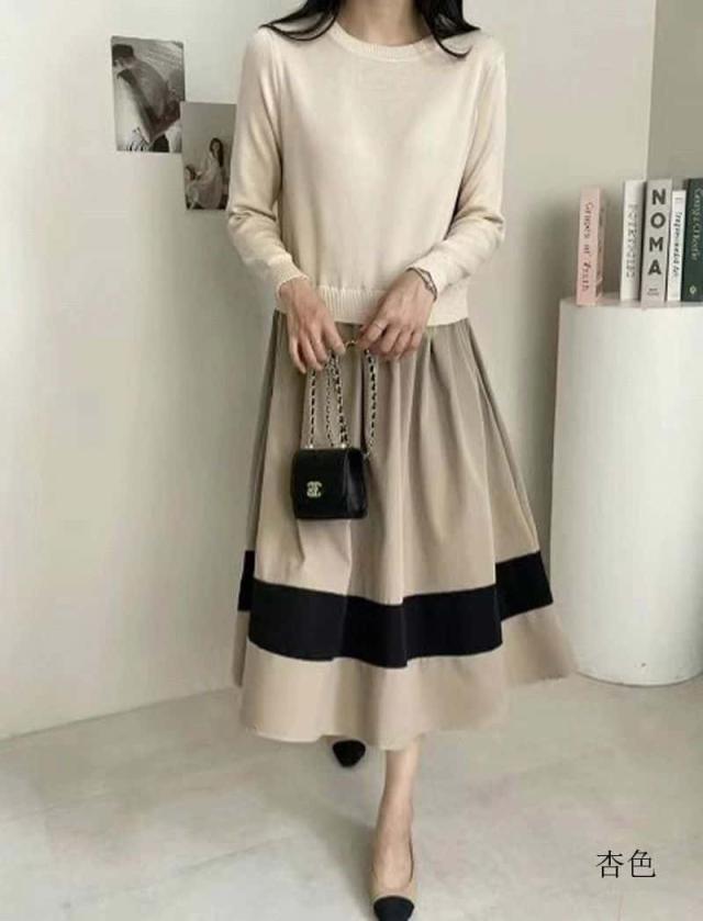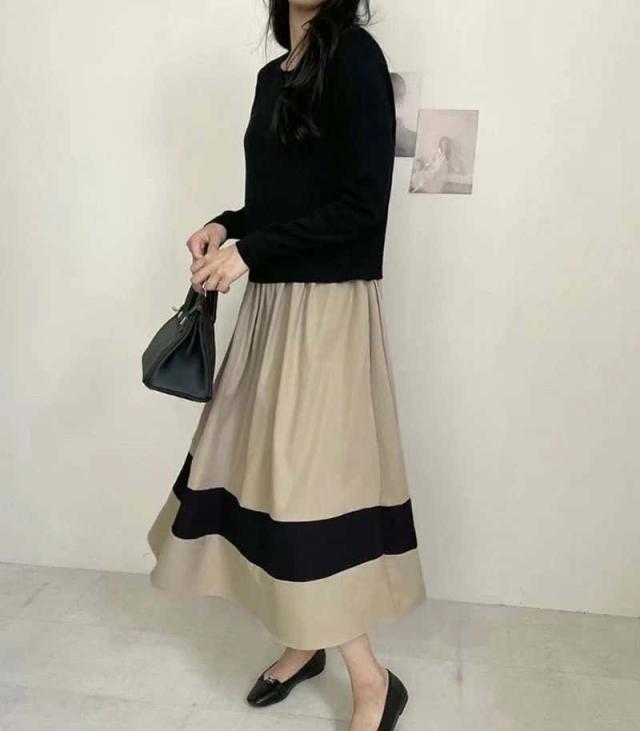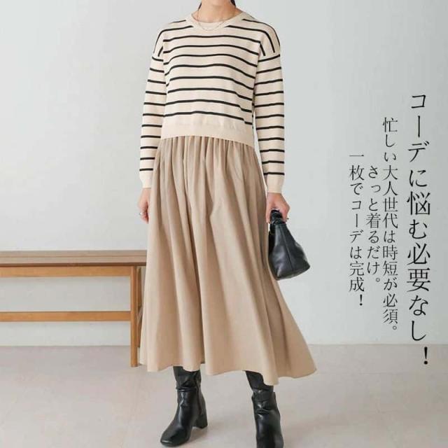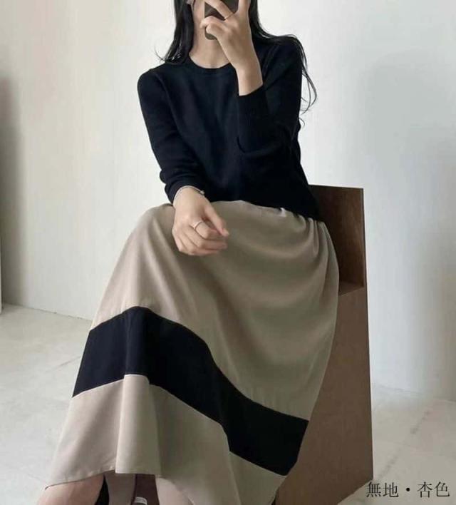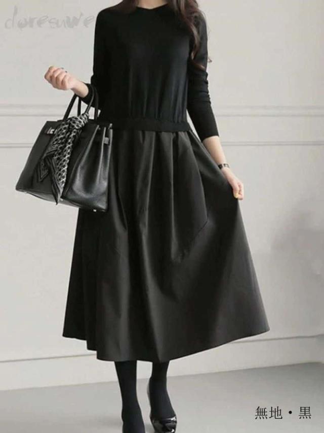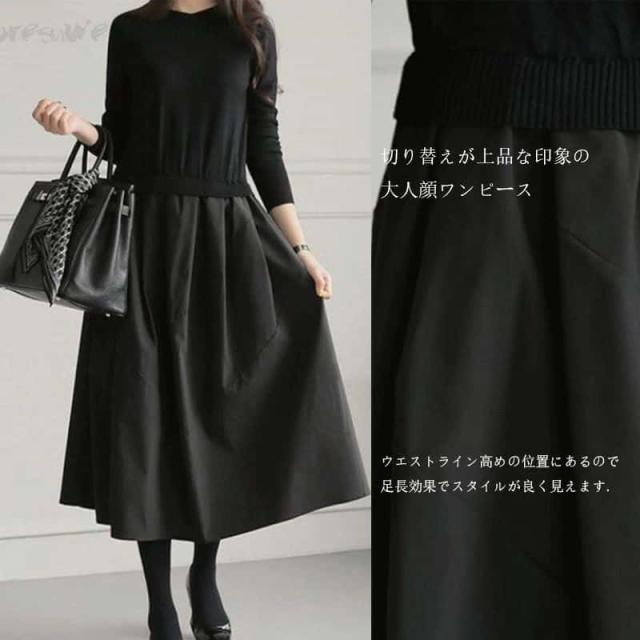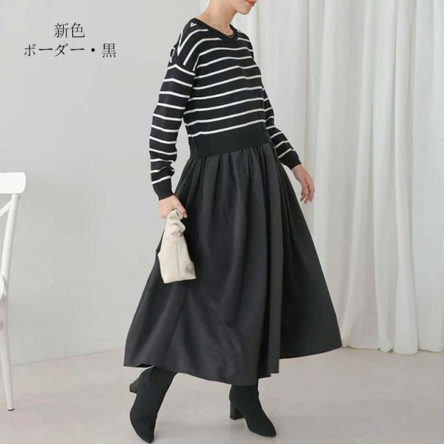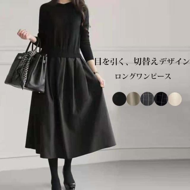 ワンピース きれいめ ロングワンピース 春先 秋 冬 長袖 ニットワンピース ロング 切り替え ニット おしゃれ ドッキングワンピース ワンピ ロング フレア Aライン ドッキング ワンピース 大きいサイズ 40代 50代 可愛い