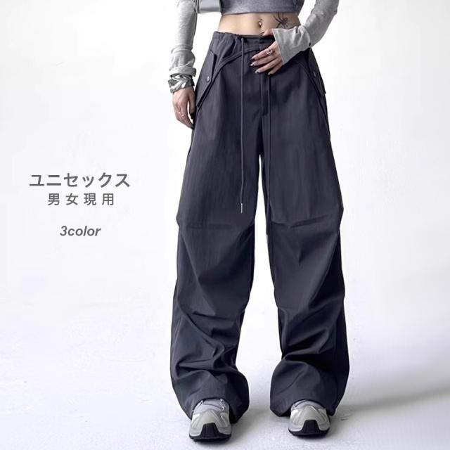 ポイント+20倍 ユニセックス カーゴパンツ 韓国風 ゆったり 男女兼用 #Pant676c2 ウエスト調節可能 カジュアル [3色] M便