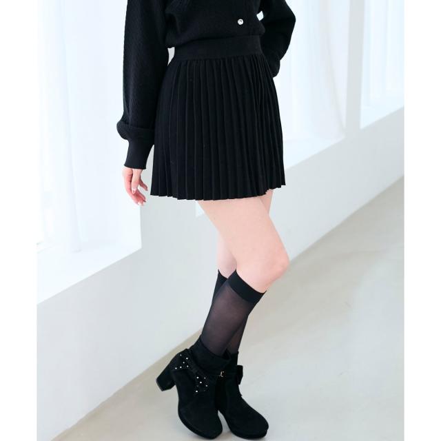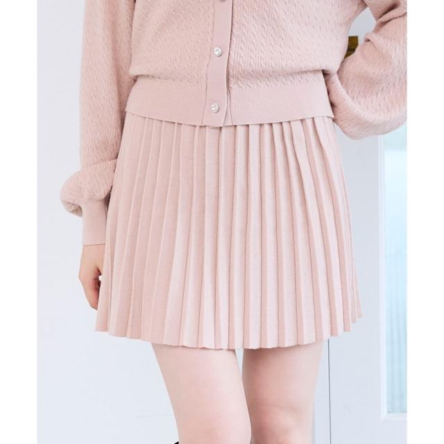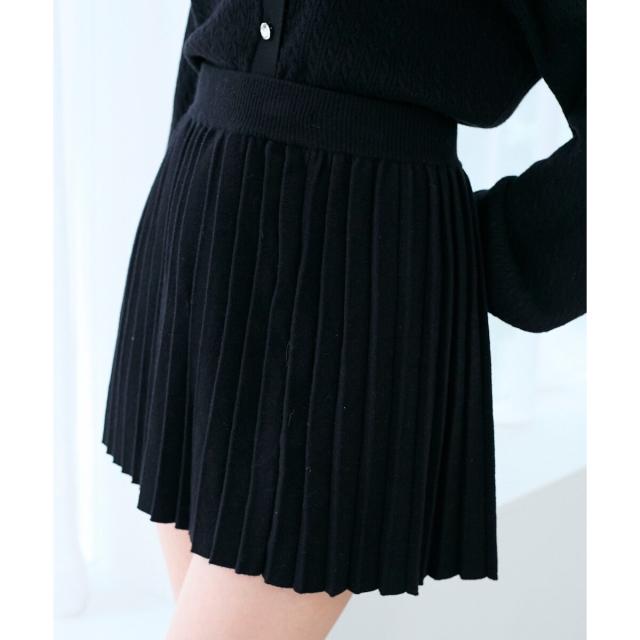 女性らしいやわらかさを引き立てるニットプリーツスカート。