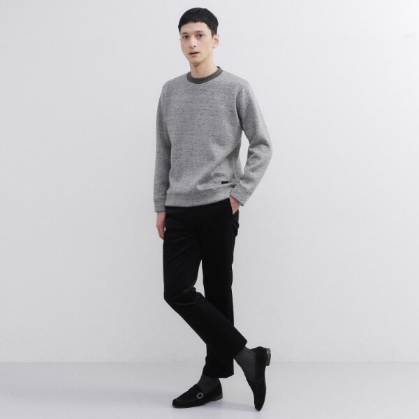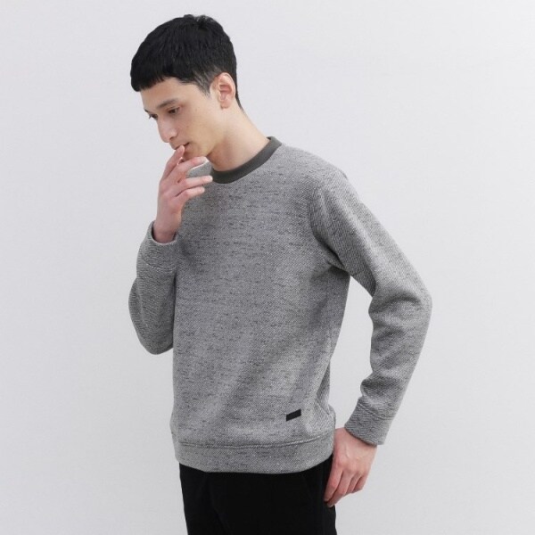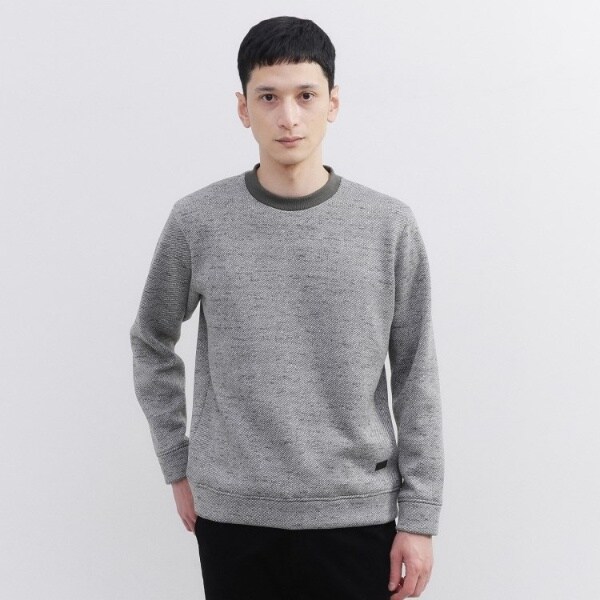 見た目にもあたたかいザックリとした太い糸を使ったセーターの様な表面に対し、裏面は起毛をかける事でフリース特有の温かさを合わせ持つハイブリッドなセーターフリースを使用したトレーナーです。