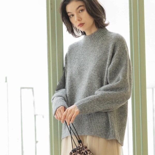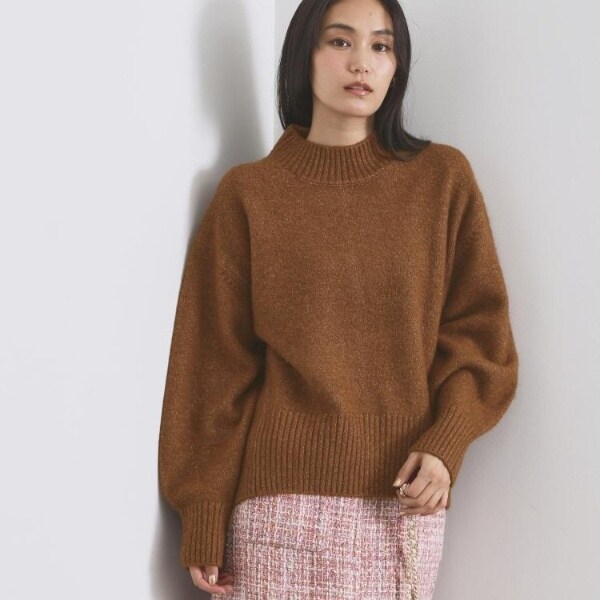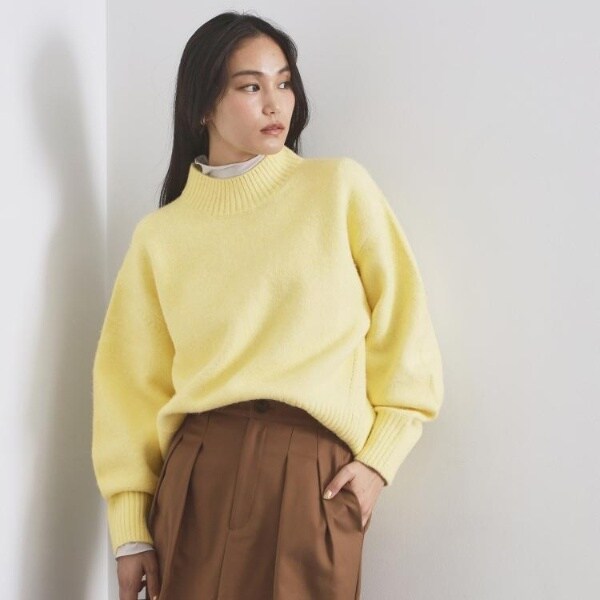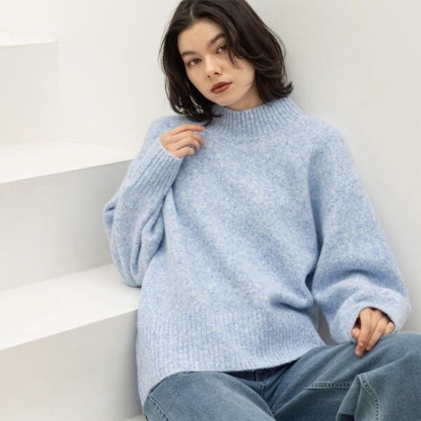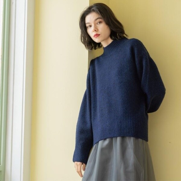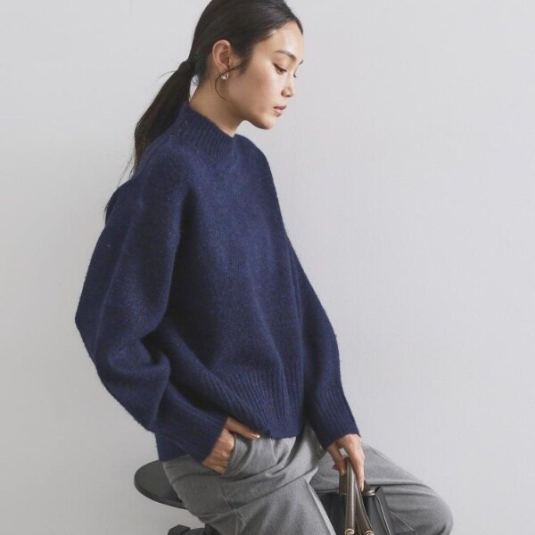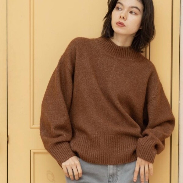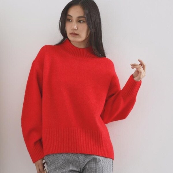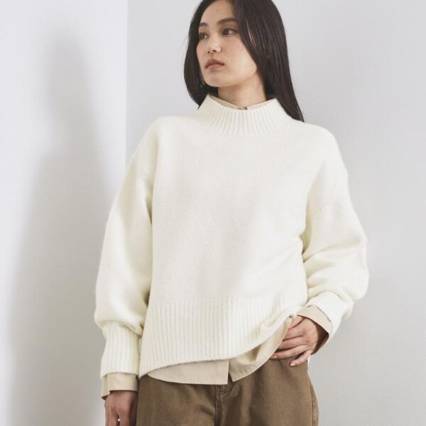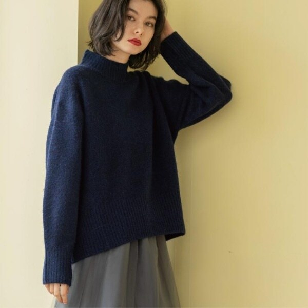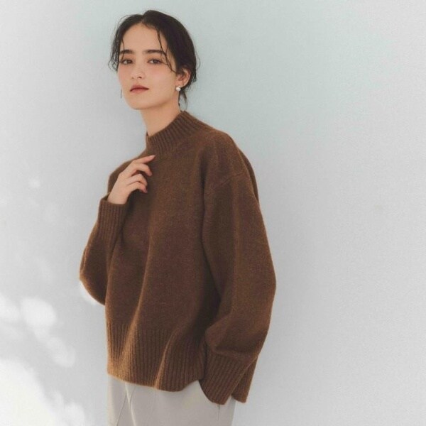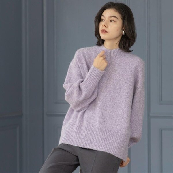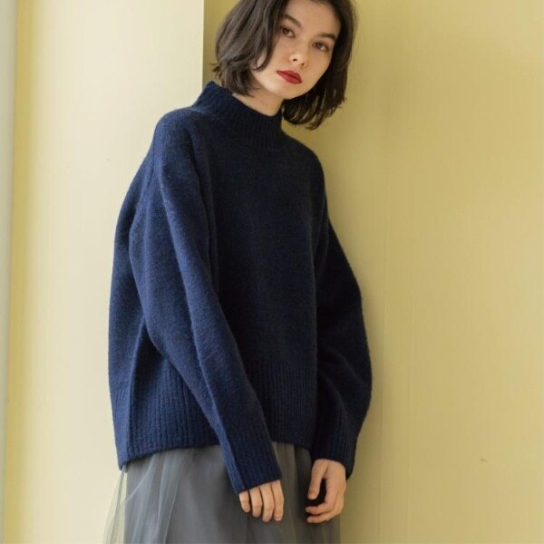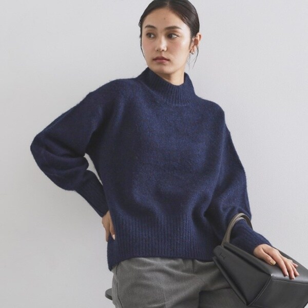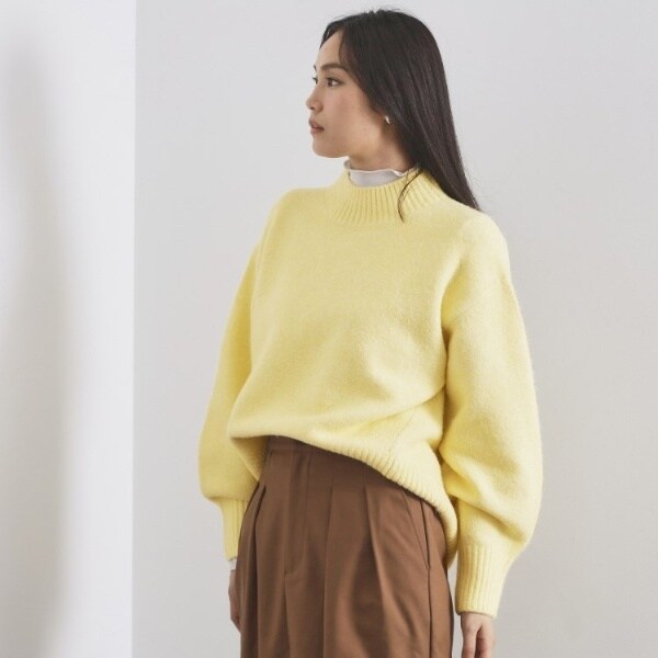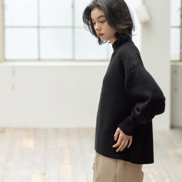 ・ふわふわな質感が特徴のミドルゲージのハイネックニット。