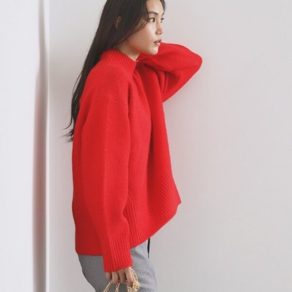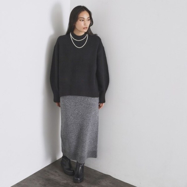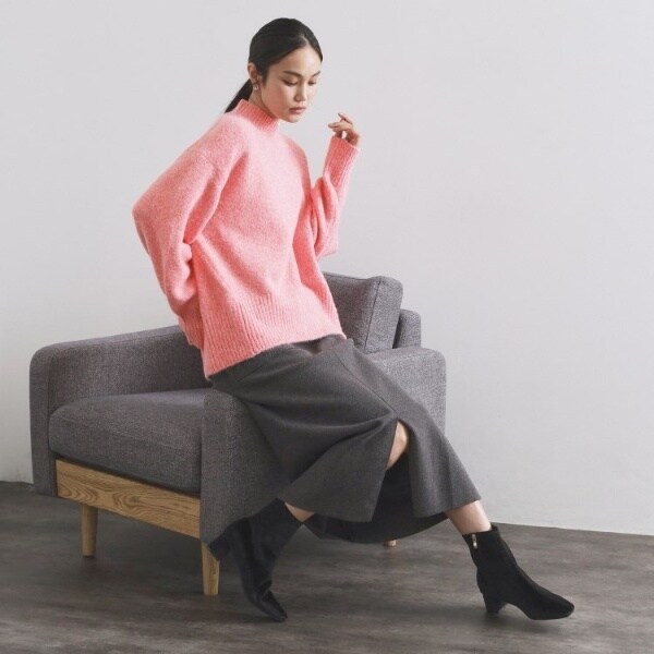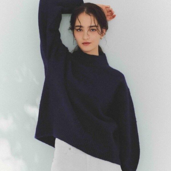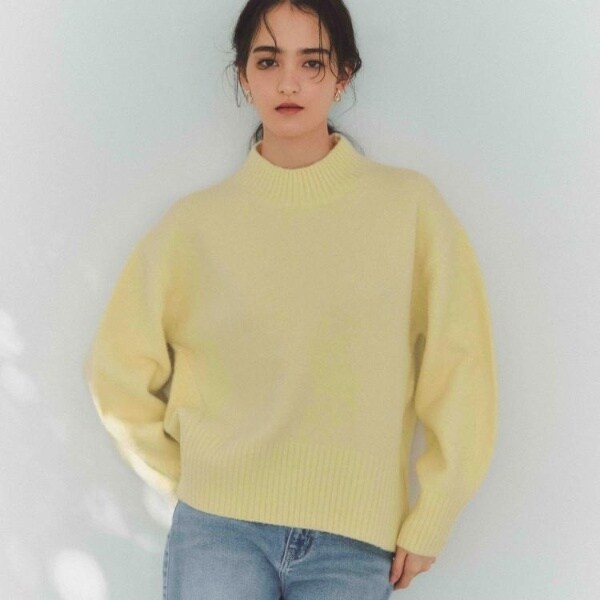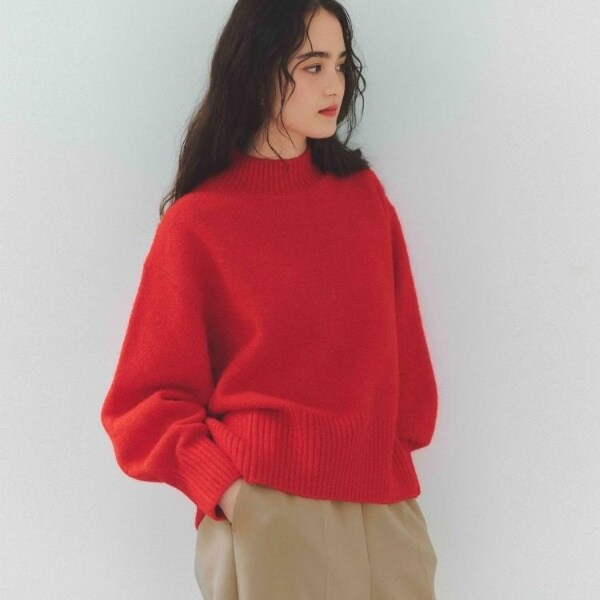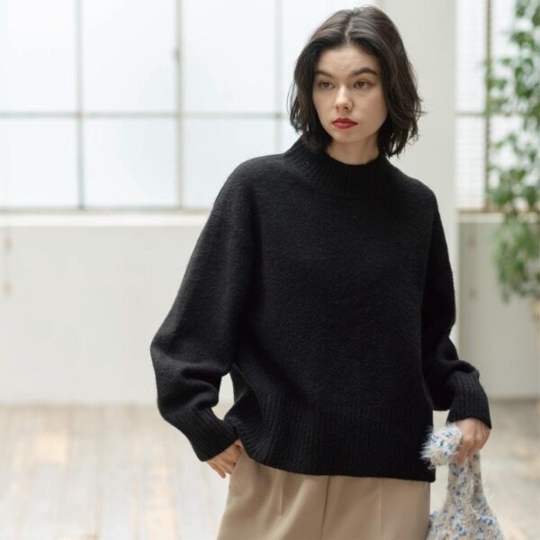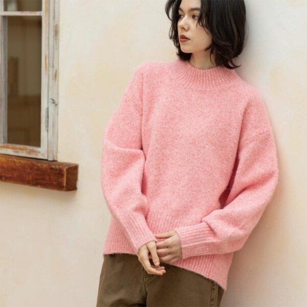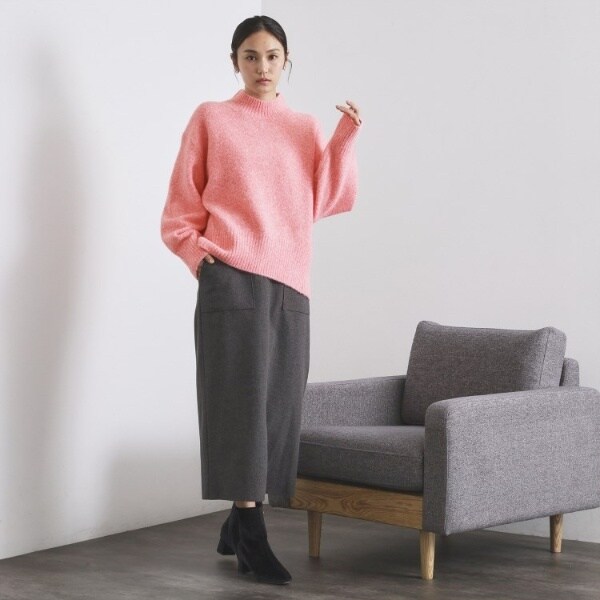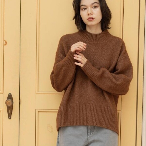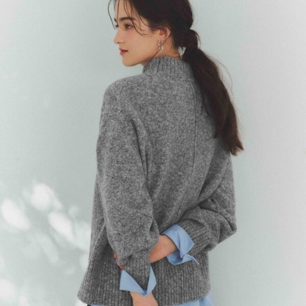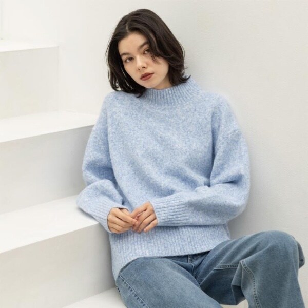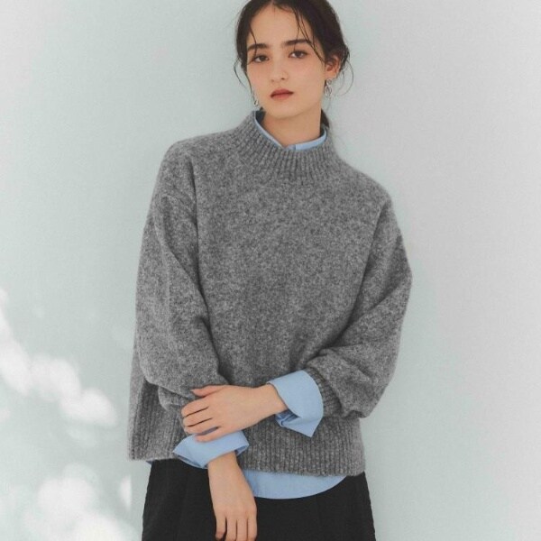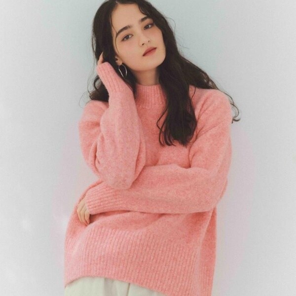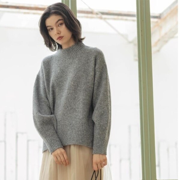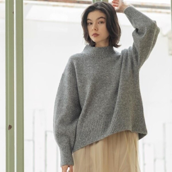 ・ふわふわな質感が特徴のミドルゲージのハイネックニット。