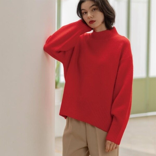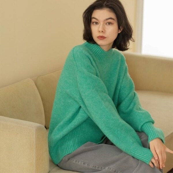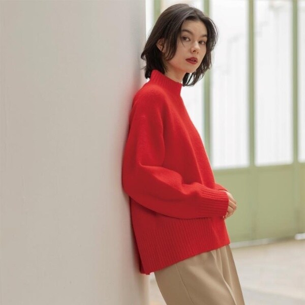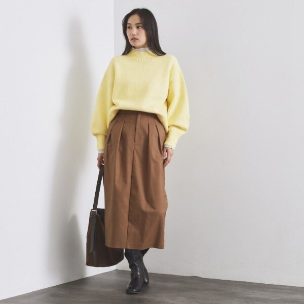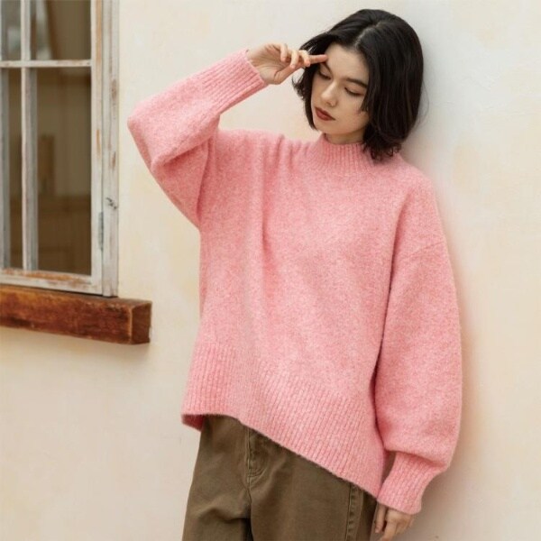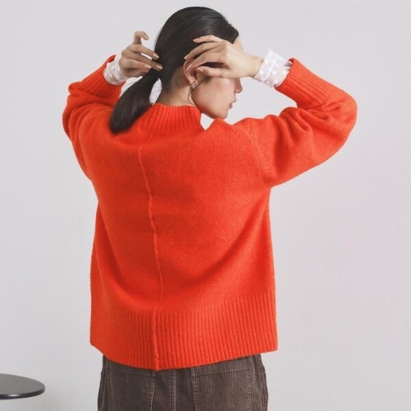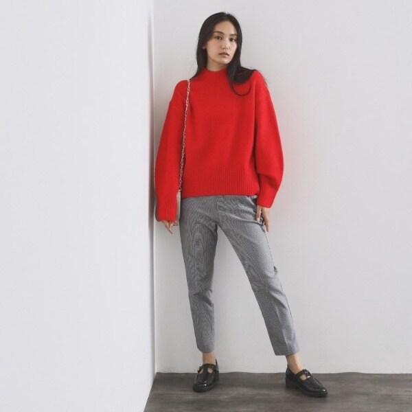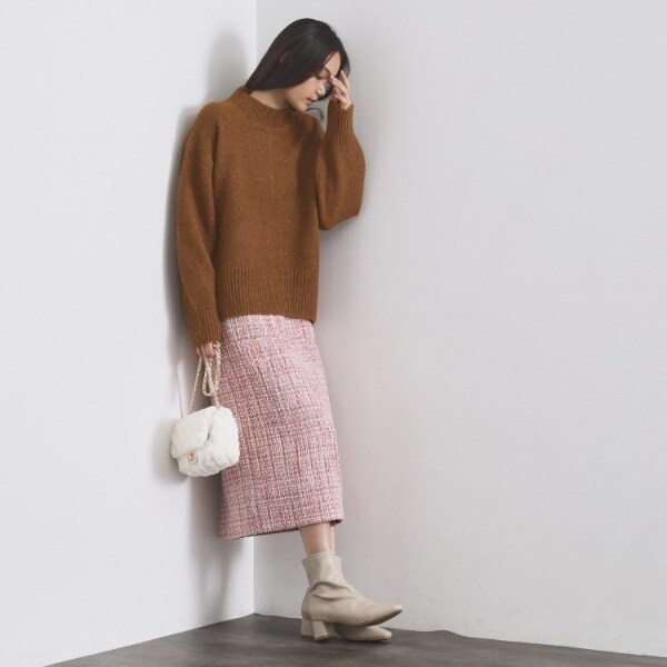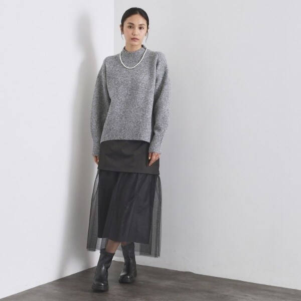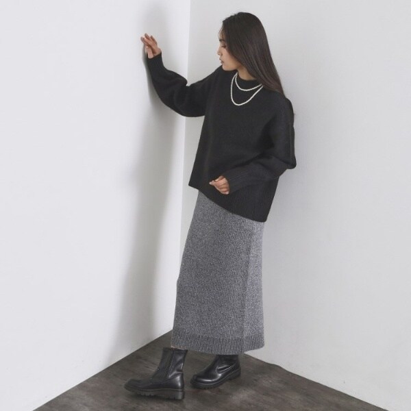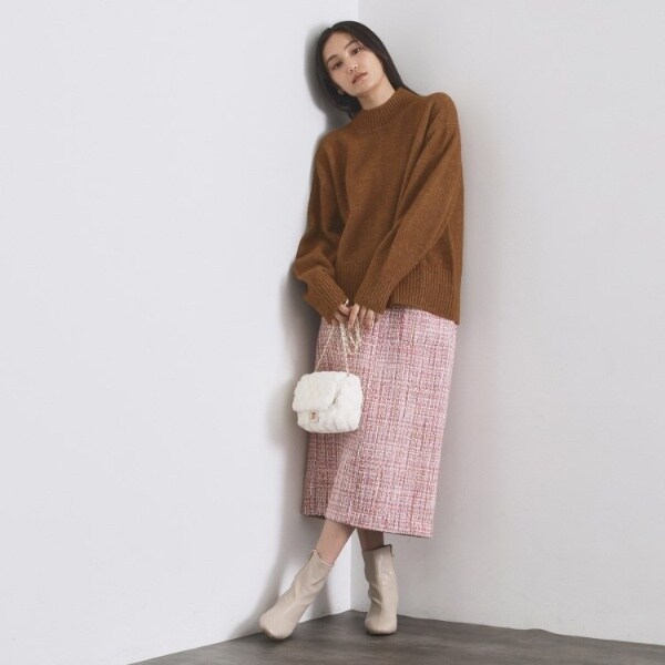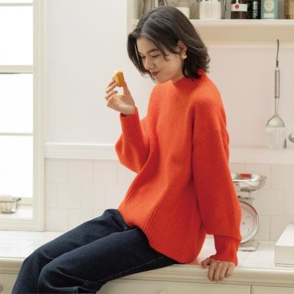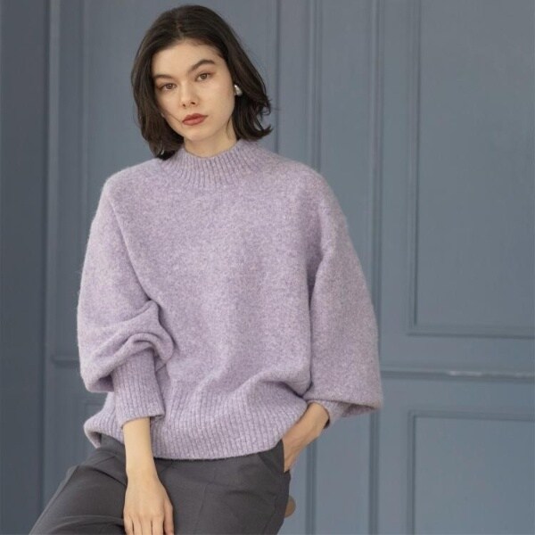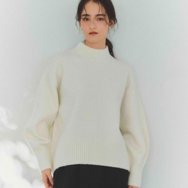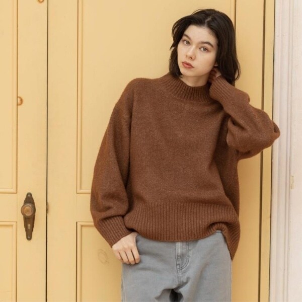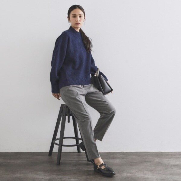 ・ふわふわな質感が特徴のミドルゲージのハイネックニット。